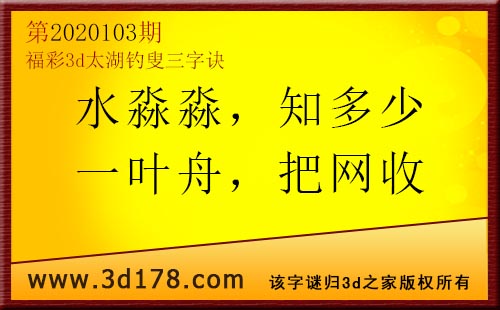 3d第20103太湖字谜:水淼淼,知多少,一叶舟,把网收