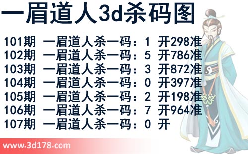 该一眉道人3d杀码图由3d之家3d图库频道原创,仅供彩民参考,温馨提供。
