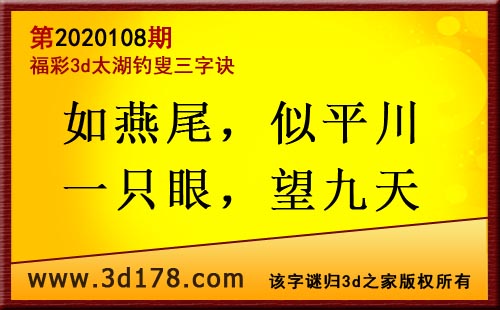 3d第20108太湖字谜:如燕尾,似平川,一只眼,望九天
