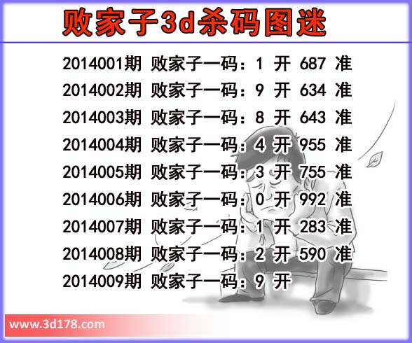 福彩3d第2014009期败家子杀码图