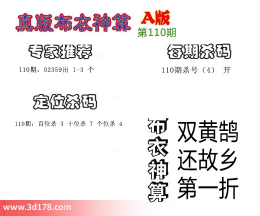 3d布衣神算第110期定位杀码: