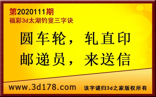 3d第20111太湖字谜:圆车轮,轧直印,邮递员,来送信