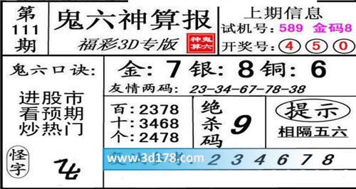 3d第20111期鬼六神算报为您推荐鬼六口诀: