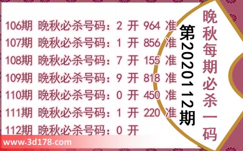 112期 晚秋必杀号码:0 开