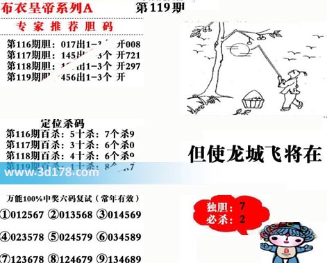 福彩3d第2020119期布衣皇帝A版布衣专家独家推荐: