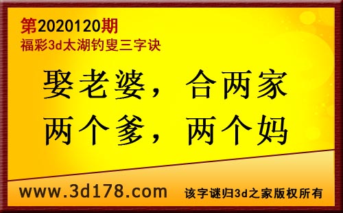 3d第20120太湖字谜:娶老婆,合两家,两个爹,两个妈