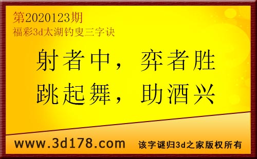 3d第20123太湖字谜:射者中,弈者胜,跳起舞,助酒兴