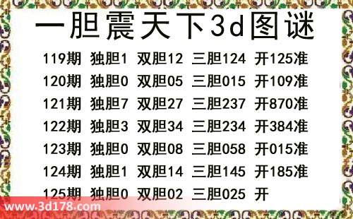 一胆震天下三胆图库由3d之家3d图库频道原创,仅供彩民参考,温馨提供。