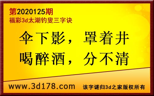 3d第20125太湖字谜:伞下影,罩着井,喝醉酒,分不清
