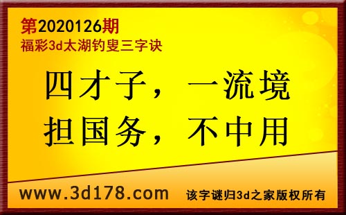 3d第20126太湖字谜:四才子,一流境,担国务,不中用