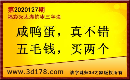 3d第20127太湖字谜:咸鸭蛋,真不错,五毛钱,买两个