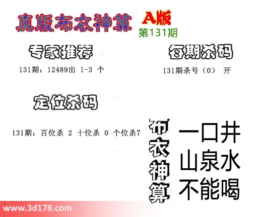 3d之家布衣图库之布衣神算图第2020131期详解:
