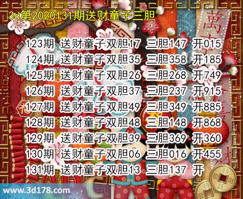下面我们一起来回顾一下3d之家胆码图送财童子三胆近期推荐详情: