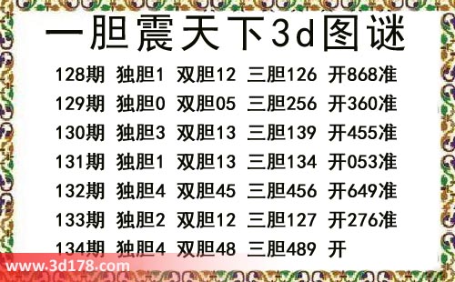 一胆震天下三胆图库由3d之家3d图库频道原创,仅供彩民参考,温馨提供。