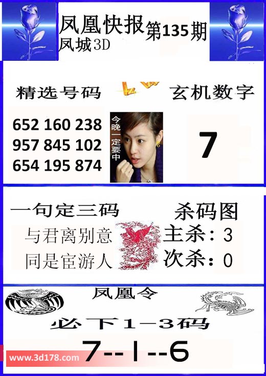 福彩3d凤凰快报图第2020135期精选号码推荐:
