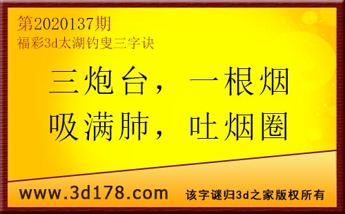 3d第20137期太湖字谜:三炮台,一根烟,吸满肺,吐烟圈