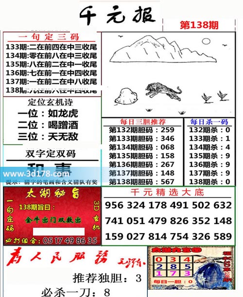 福彩3d第2020138期布衣千元报图详情分析如下: