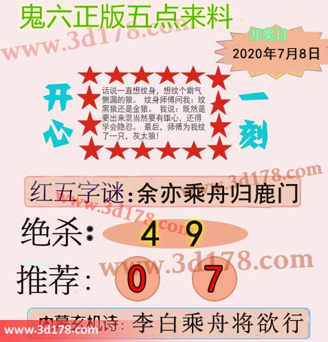 福彩3d第2020141期鬼六五点来料: