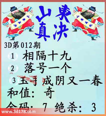 福彩3d第012期山东真诀图: