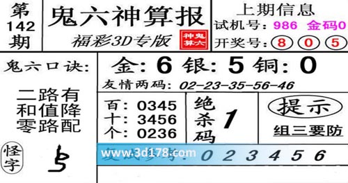 3d第20142期鬼六神算报为您推荐鬼六口诀: