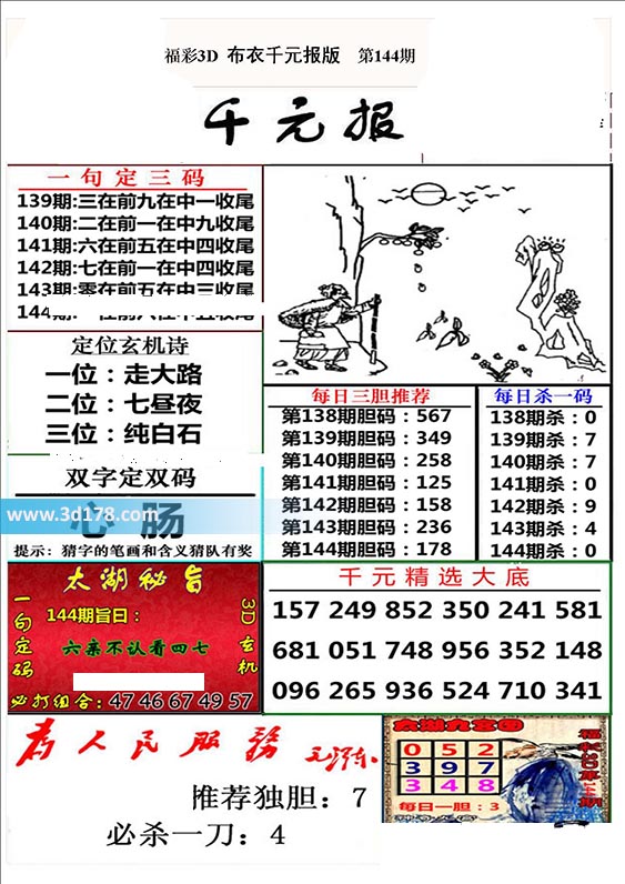 福彩3d第2020144期布衣千元报图详情分析如下: