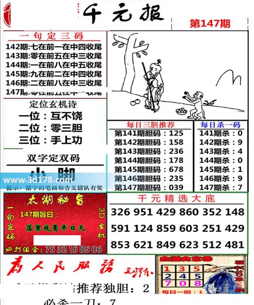 福彩3d第2020147期布衣千元报图详情分析如下:
