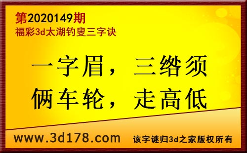 3d第20149期太湖字谜:一字眉,三绺须,俩车轮,走高低