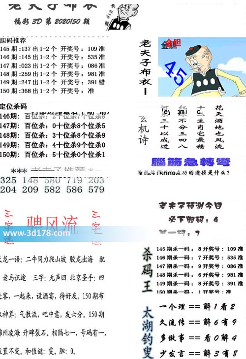 福彩3d第2020150期老夫子布衣图详情: