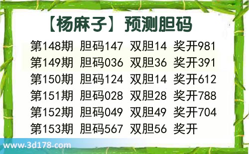 杨麻子胆153期杨麻子胆码推荐: