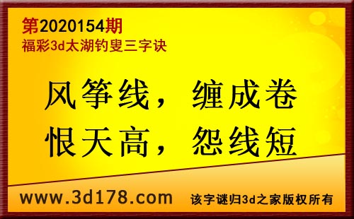 3d第20154期太湖字谜:风筝线,缠成卷,恨天高,怨线短