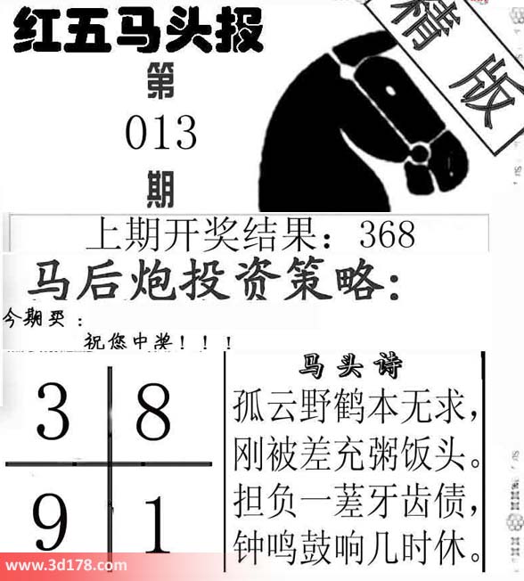 福彩3d第2014013期红五马头报: