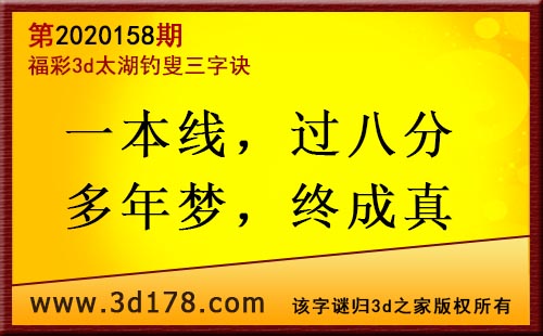 3d第20158期太湖字谜:一本线,过八分,多年梦,终成真
