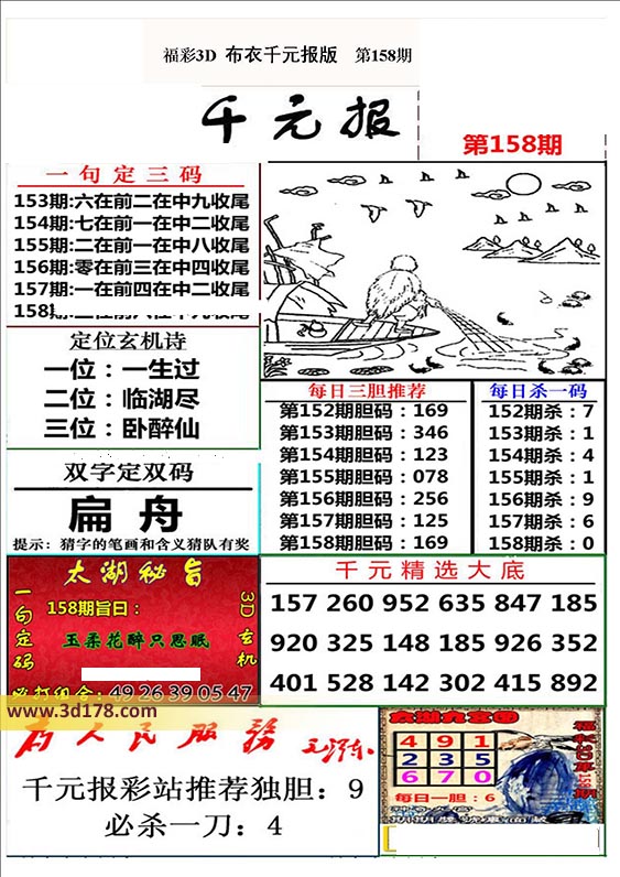 福彩3d布衣图库布衣千元报第2020158期定位玄机诗: