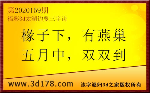 3d第20159期太湖字谜:椽子下,有燕巢,五月中,双双到