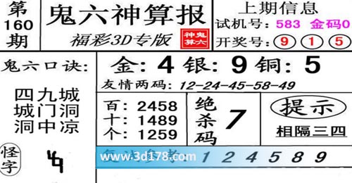3d第20160期鬼六神算报为您推荐鬼六口诀: