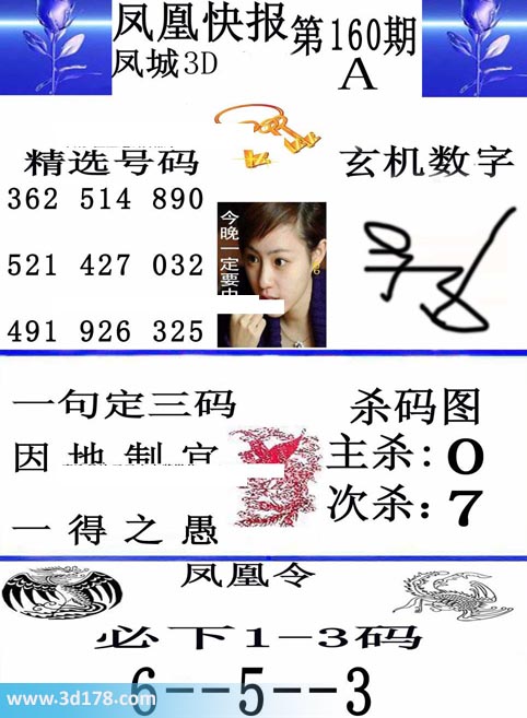 福彩3d凤凰快报图第2020160期精选号码推荐: