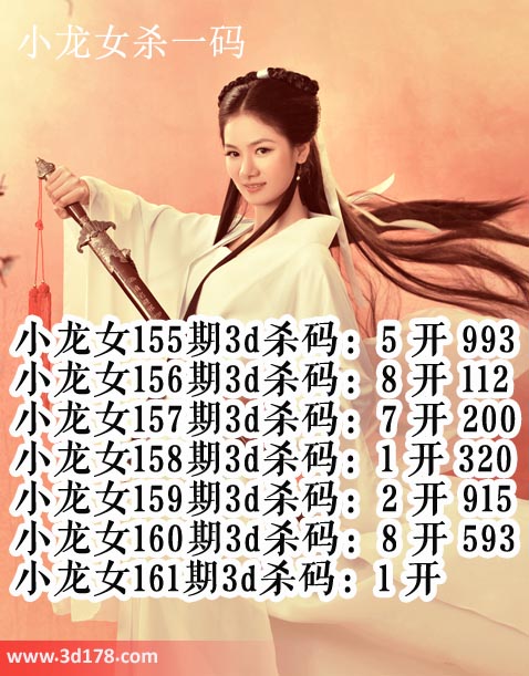 小龙女160期3d杀码:8 开 593