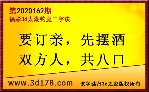 3d第20162期太湖字谜:要订亲,先摆酒,双方人,共八口