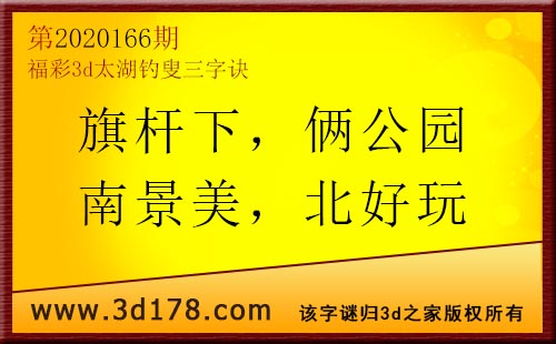 3d第20166期太湖字谜:旗杆下,俩公园,南景美,北好玩