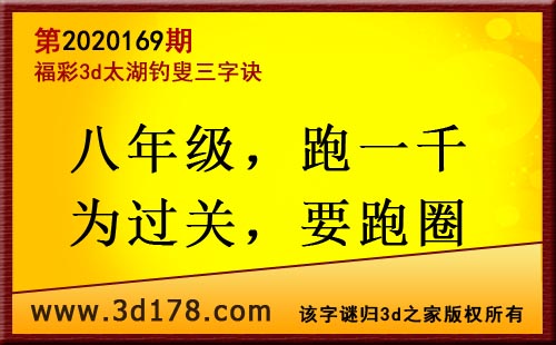 3d第20169期太湖字谜:八年级,跑一千,为过关,要跑圈