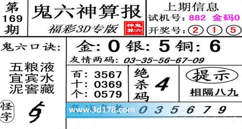 3d第20169期鬼六神算报为您推荐鬼六口诀: