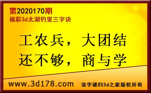 3d第20170期太湖字谜:工农兵,大团结,还不够,商与学