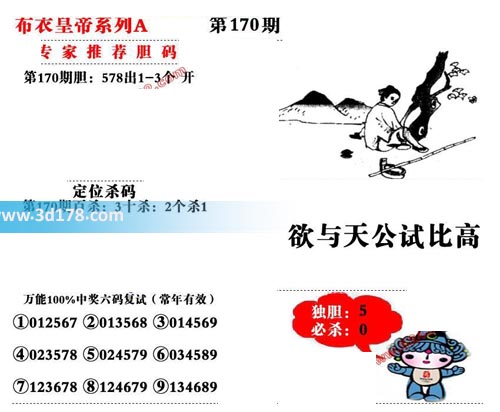 福彩3d第2020170期布衣皇帝A版布衣专家独家推荐: