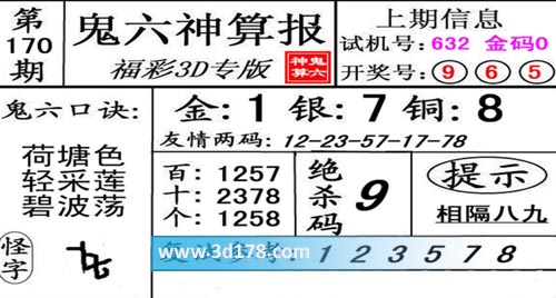 3d第20170期鬼六神算报为您推荐鬼六口诀: