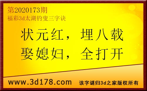 3d第20173期太湖字谜:状元红,埋八载,娶媳妇,全打开