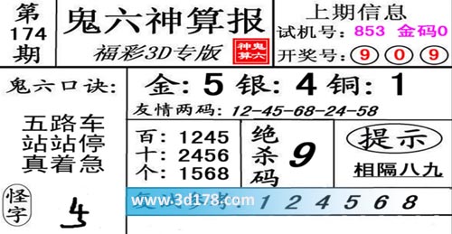 3d第20174期鬼六神算报为您推荐鬼六口诀: