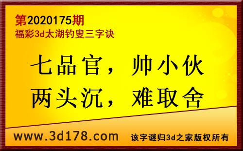 3d第20175期太湖字谜:七品官,帅小伙,两头沉,难取舍