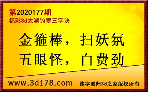3d第20177期太湖字谜:金箍棒,扫妖氛,五眼怪,白费劲