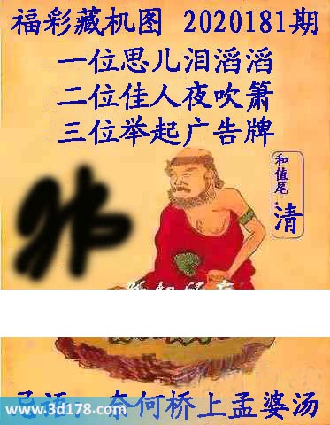 福彩3d第2020181期正版藏机图详解: