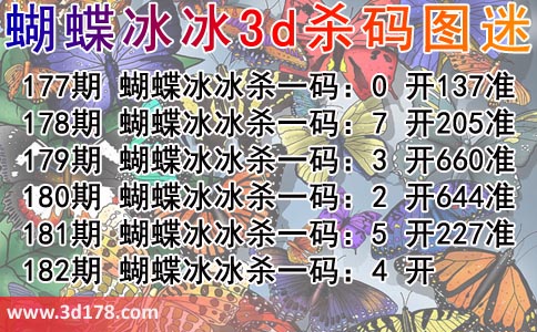第2020182期3d蝴蝶冰冰杀码图杀号推荐分析: